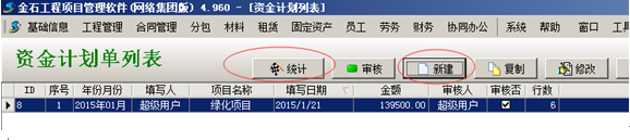 【資金計(jì)劃單】在菜單【二次開(kāi)發(fā)】-【資金計(jì)劃設(shè)置】中,主要包括了【新建】資金計(jì)劃單和資金計(jì)劃單的【統(tǒng)計(jì)】功能。