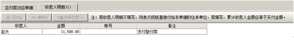 入庫(kù)單創(chuàng)建完并審核后,發(fā)起付款申請(qǐng)單,在下圖付款申請(qǐng)單中,選擇好沖抵員工借款、報(bào)銷(xiāo)類(lèi)別、報(bào)銷(xiāo)員工,這時(shí)會(huì)根據(jù)單據(jù)付款金額與抵扣金額,自動(dòng)計(jì)算出實(shí)付金額,而實(shí)付金額是我們要付款的金額,這時(shí)可以在后面的收款人或墊付人明細(xì)中選擇向誰(shuí)付款,如果是員工墊付的就填寫(xiě)員工,如果是付款給往來(lái)單位就可以空著不填。