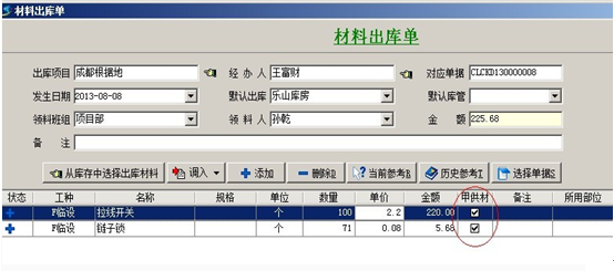 3. 【材料調撥單】主要用于:項目與項目之間的材料調撥,或公司總庫與項目之間的材料調撥。在填寫時要選擇好調出項目和調入項目。調出項目有兩種出場方式:庫房調出和班組繳料,調入項目有兩種進場方式:調撥入庫和直進項目。進場方式選擇直進項目時,明細中的材料金額會進入調入項目的成本中。如果調出項目,出場方式選擇的是班組繳料,也就是從項目現場直接調出的,這時調出項目的成本中會減去明細中材料的金額。