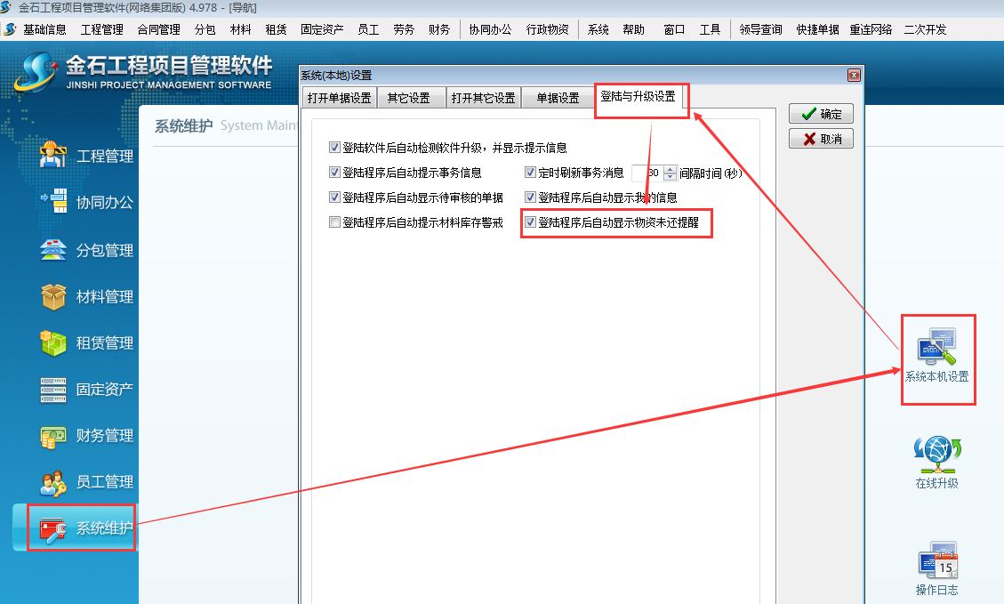 具體設置辦法 :【系統維護】-【系統本機設置】-【登錄與升級設置】 如下圖: