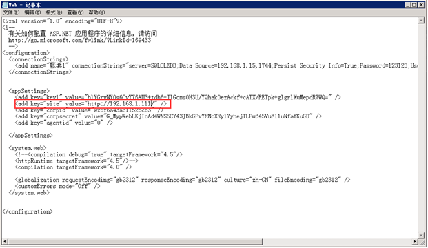 6. 設(shè)置web.conf 文件.IP地址、數(shù)據(jù)庫名稱、數(shù)據(jù)密碼、key字段等。如圖: