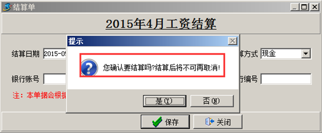 如果想取消結算,則選中對應的員工工資信息,點擊“取消結算”的按鈕,確認取消結算,則員工工資信息會恢復到未結算狀態,如圖: