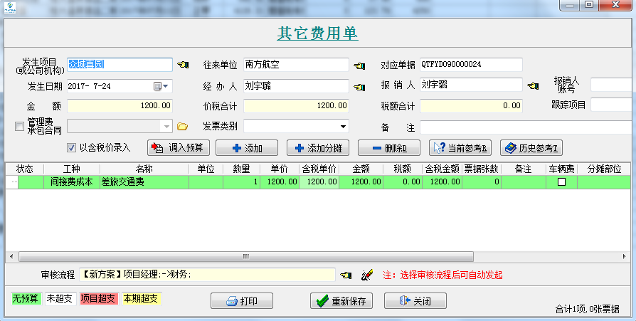3、以其他費(fèi)用的報(bào)銷為例,先填寫一張【其他費(fèi)用單】(如果是材料采購或外包人工單等單據(jù)類似于其他費(fèi)用單)