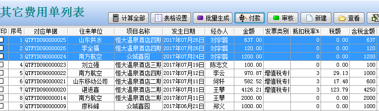 4、 【其他費(fèi)用單】審核完成后,到月底出納在“其他費(fèi)用列表”中找到需要報(bào)銷的單據(jù),一起發(fā)起直接報(bào)銷付款