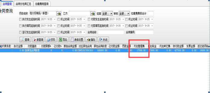 ④“分包合同”查詢掛靠單位資金剩余應(yīng)返還工程款金額等(下圖中代扣的管理費17500元就是我們公司的盈利)