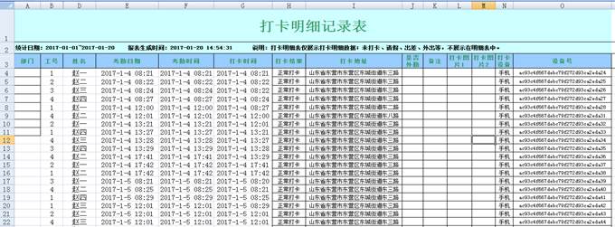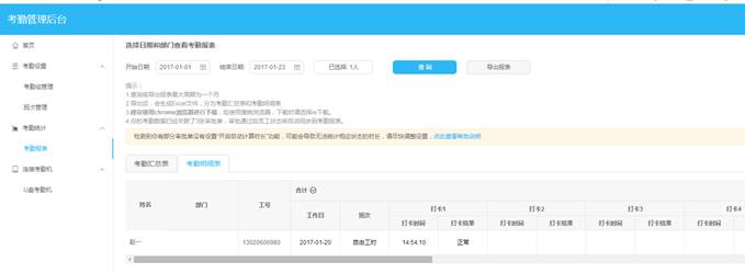 選擇好時間段,和考勤員工后,點(diǎn)擊查詢按鈕,出現(xiàn)如下圖所示