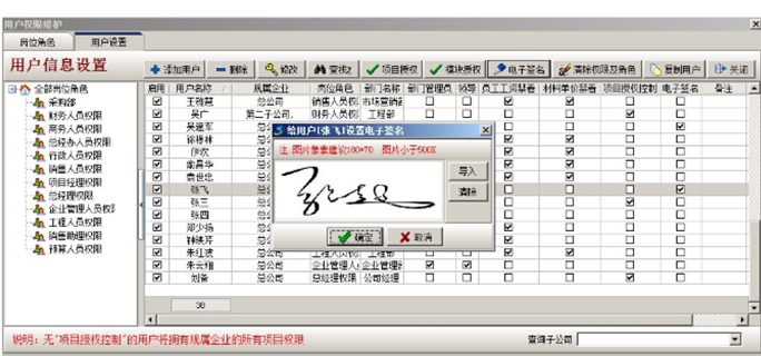電子簽名制作完成后,點擊【用戶權限維護】-【用戶設置】-【電子簽名】-【導入】