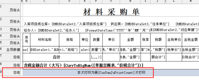 設置完成后,操作者在生成表格時,可在尾欄插入【數據字段】-本次打印為第[CurDanJuPrintCount]打印,示意如下: