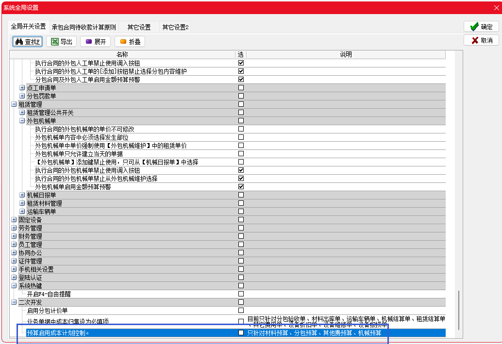 使用該功能需開啟系統全局設置“預算啟用成本計劃控制”