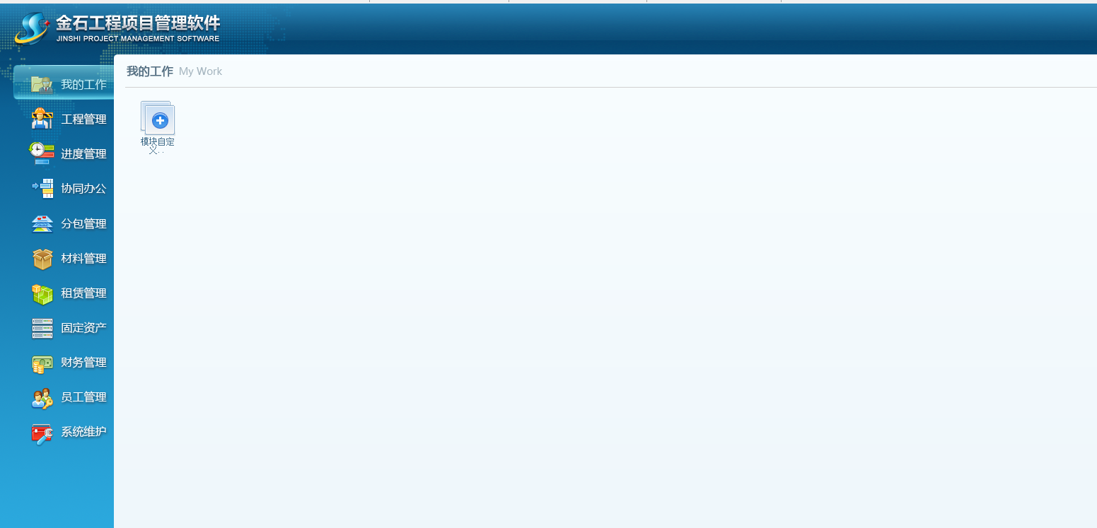 1、在版本6.18中,在導航模塊中新加了【我的工作】模塊,此模塊主要用于普通用戶的常用單據和查詢按鈕的自定義設置。初始模式如下圖