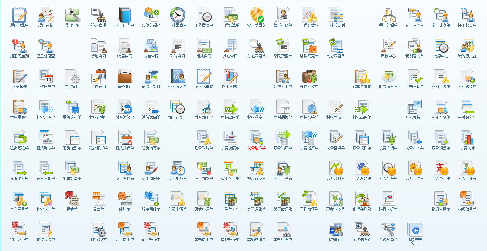 折疊:全部圖標折疊顯示,此操作,便于快速定位主模塊下的單據和查詢。