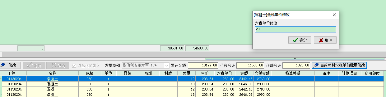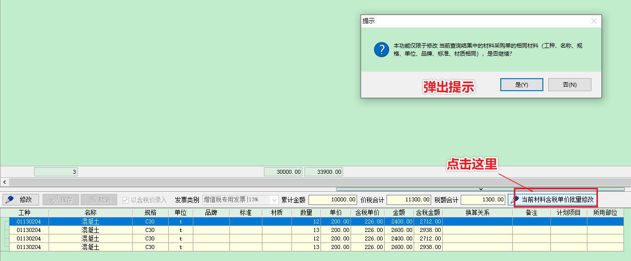 2 批量修改(適用于材料名稱規(guī)格單位品牌標(biāo)準(zhǔn)材質(zhì)完全一致的情況)