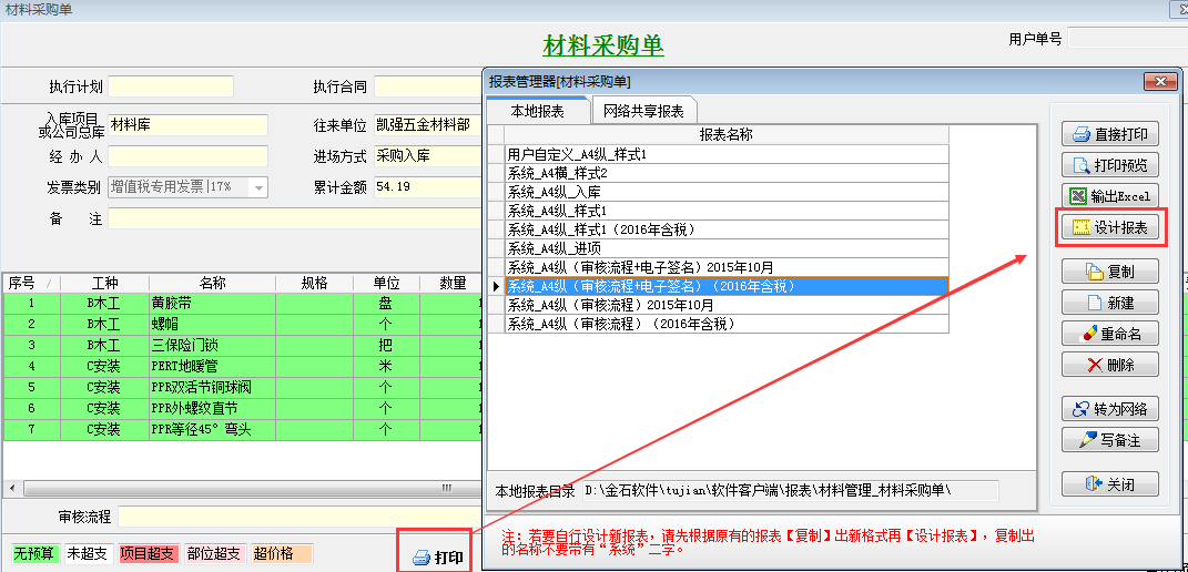 打印次數變量為:[CurDanJuPrintCount],在業務單據【打印】處,選中打印報表,點擊設計報表,在報表【總結】項中增加“本次打印為第[CurDanJuPrintCount]次打印。