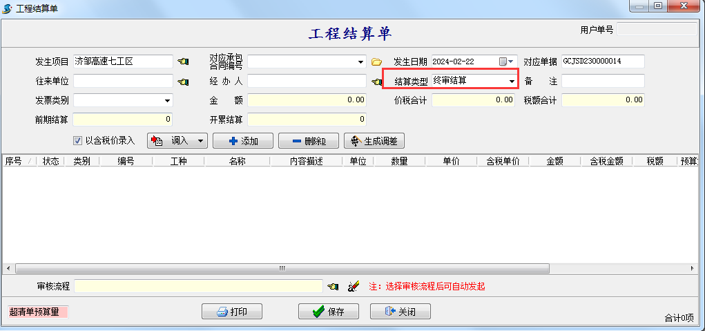 如果項目結算完成,可以點擊結算選項取消提醒,也可以填寫工程結算單選擇終審結算取消提醒。