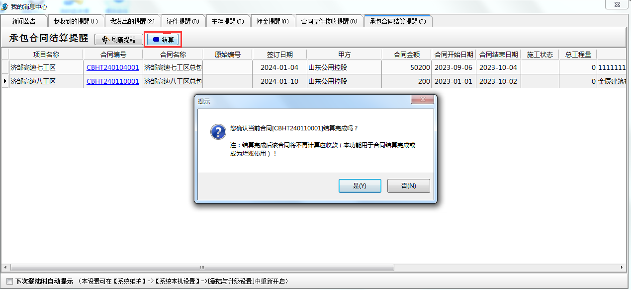 金石軟件新增項目結算提醒功能
