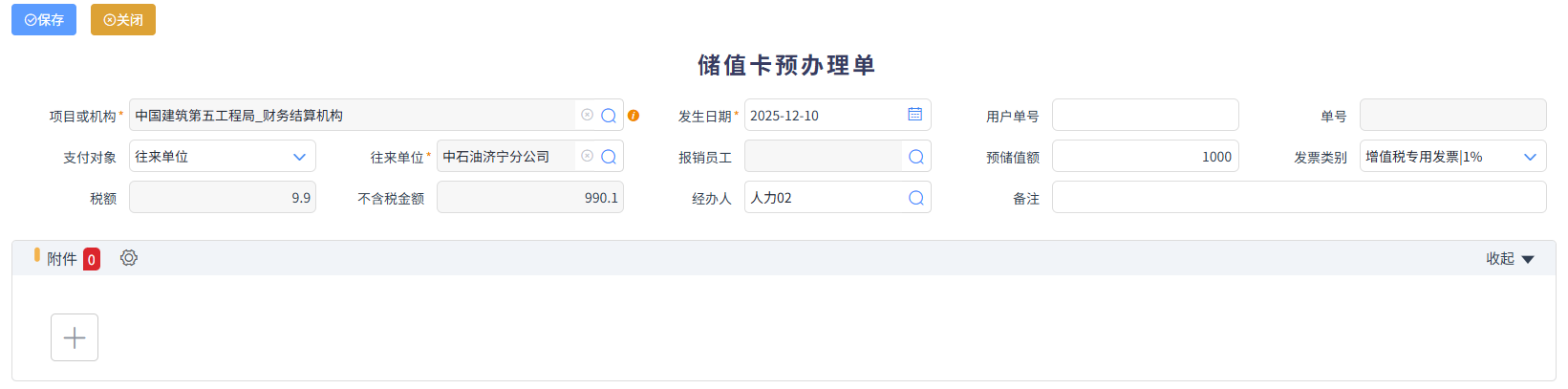 儲值卡核銷問題,需要經辦加油的人,做費用預報銷單,關聯(lián)儲值卡號,如下圖所示,