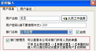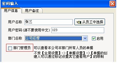 【部門管理員】可以查看本部門所有人員的單據、不受【單據的創建人可通過標記來設置其它查看用戶】的限制。