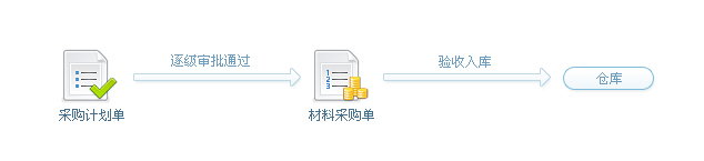 2、項目上報采購計劃 ->相關人員逐級審批通過->辦理采購->驗收入庫 (適合項目上大材批量采購,不需要簽訂供貨合同的)